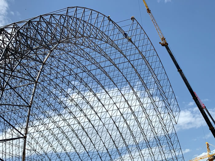 (2)网架加工前应对现场尺寸进行复测,确认无误后方可进行加工、安装;网架制作、运输、安装应遵守《空间网格结构技术规程》JGJ7-2010、《钢网架承德螺栓球节点》JG/T 10-2009、《钢网架承德螺栓球节点用高强度螺栓》 GB/T 16939-2016、《承德钢结构承德工程承德施工规范》 GB50755-2012、《承德钢结构承德工程施工质量验收标准》 GB50205-2020。